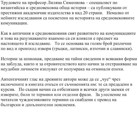 В полусенките на историята. Комуникации, шпионаж и отровителство през вековетеАвтор: Лиляна Симеонова