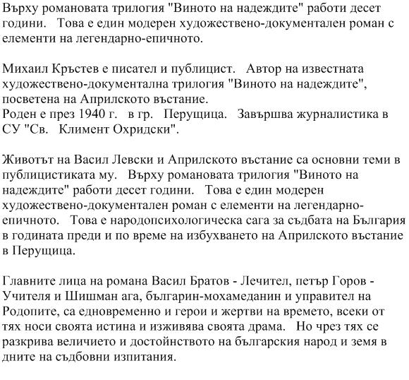 Виното на надеждите - РоманАвтор: Михаил Кръстев