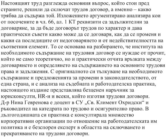 Необходимо съдържание на индивидуалния трудов договорАвтор: доц. д-р Нина Гевренова