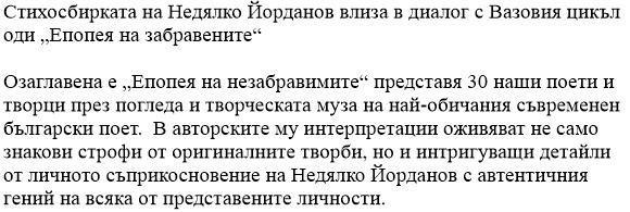 Епопея на незабравимитеАвтор: Недялко Йорданов