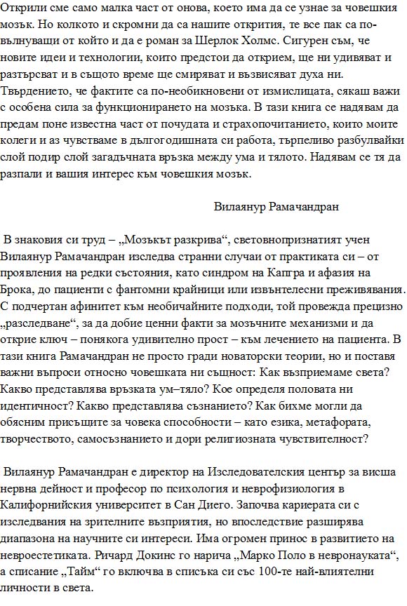 Мозъкът разкриваАвтор: Вилаянур Рамачандран