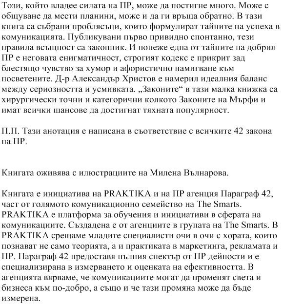 42 закона на ПР. Проблясъци за тайните на успеха в комуникациитеАвтор: Александър Христов